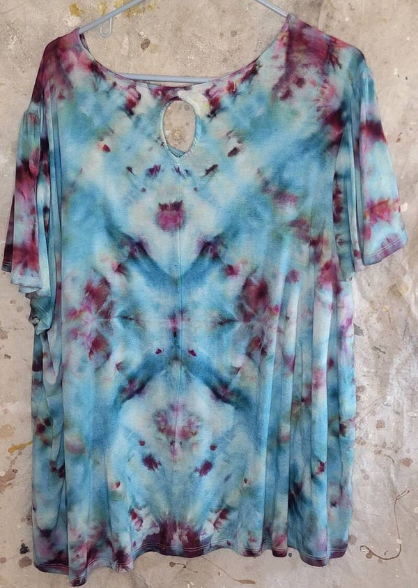 Sonoma brand rayon cap sleeve shirt. Lace band on front and keyhole back. Dyed in Mindbender