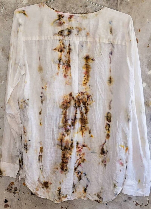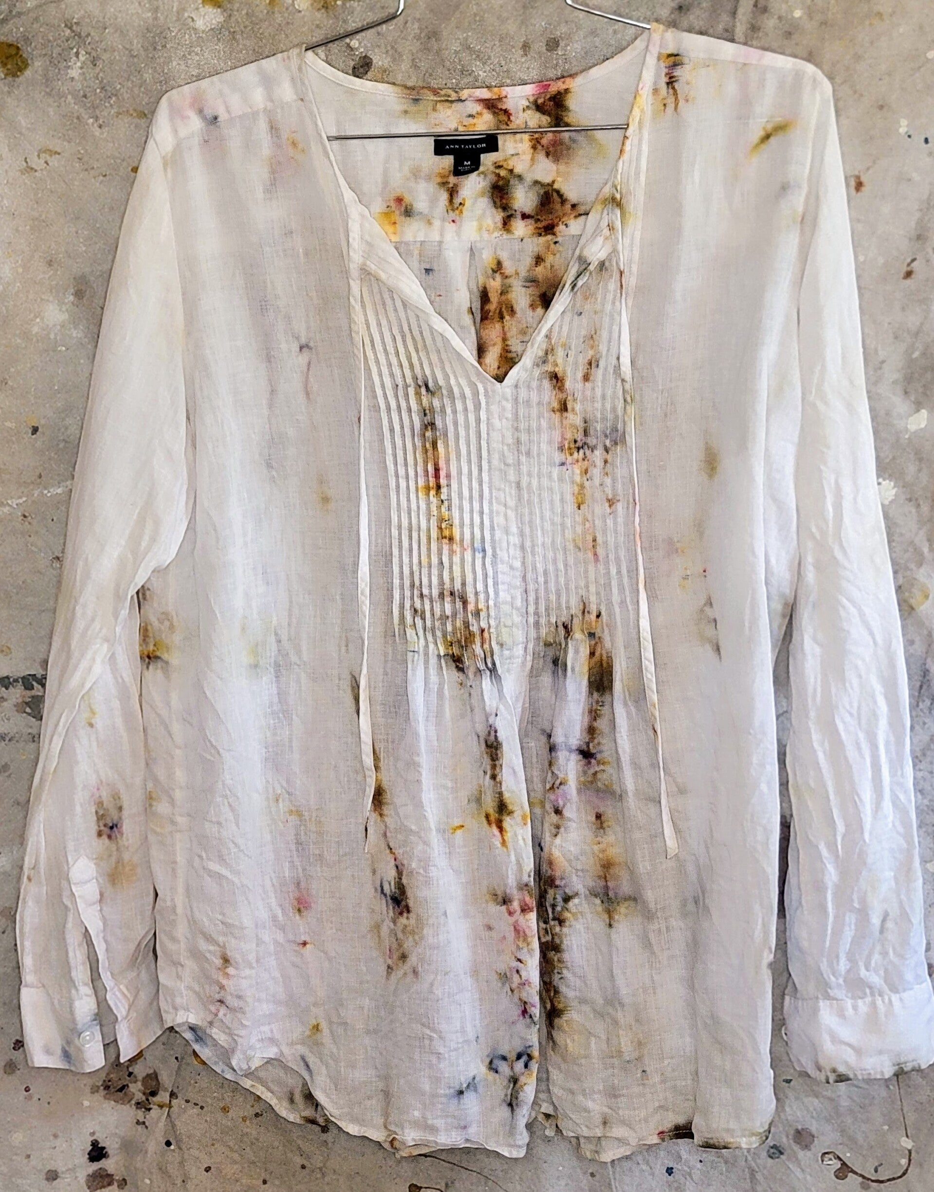 Ann Taylor linen long sleeved button shirt. Ripple front with ties. Lightly dyed in ecru