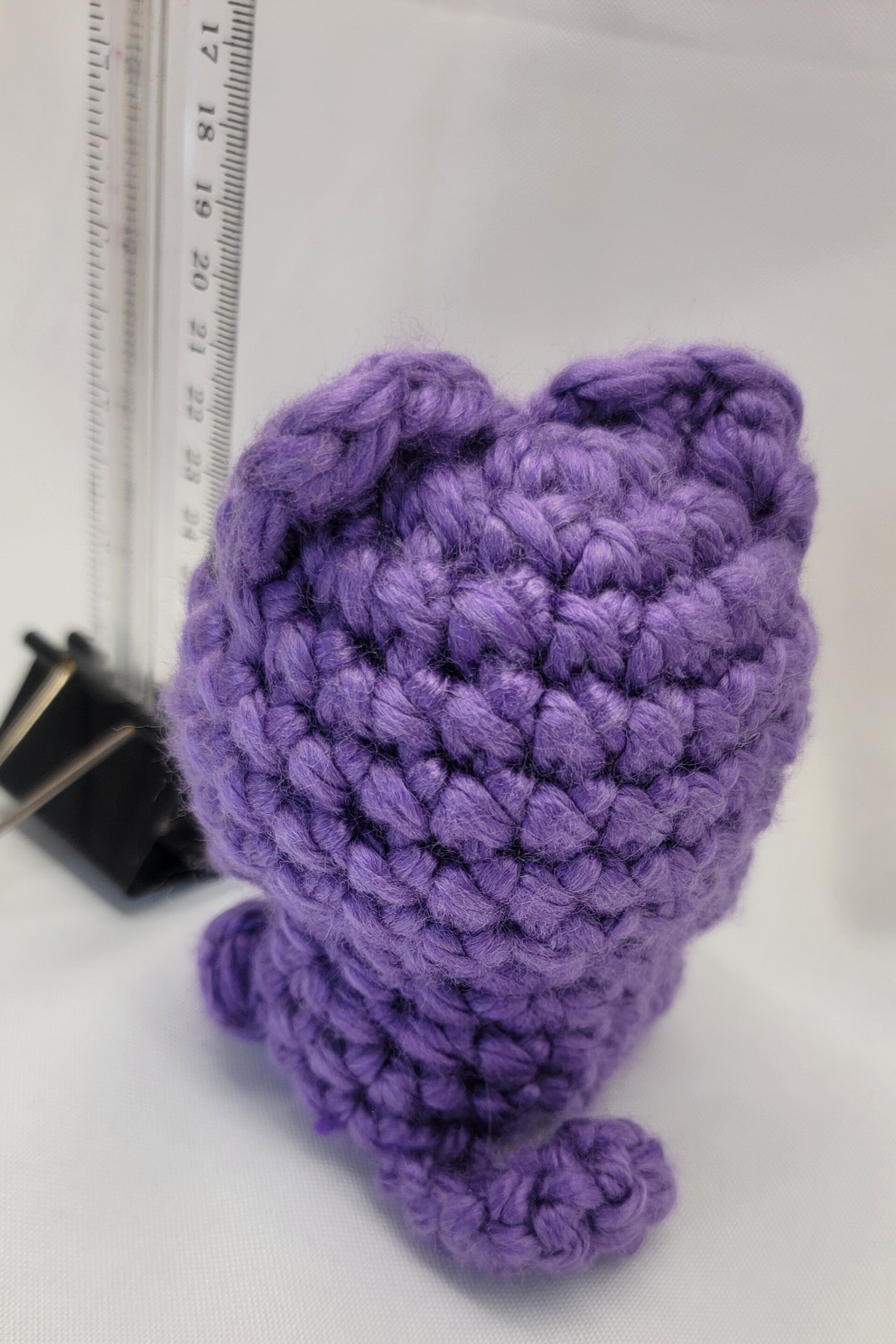 Purple cat. 4." tall Big black safety eyes and a pink nose.