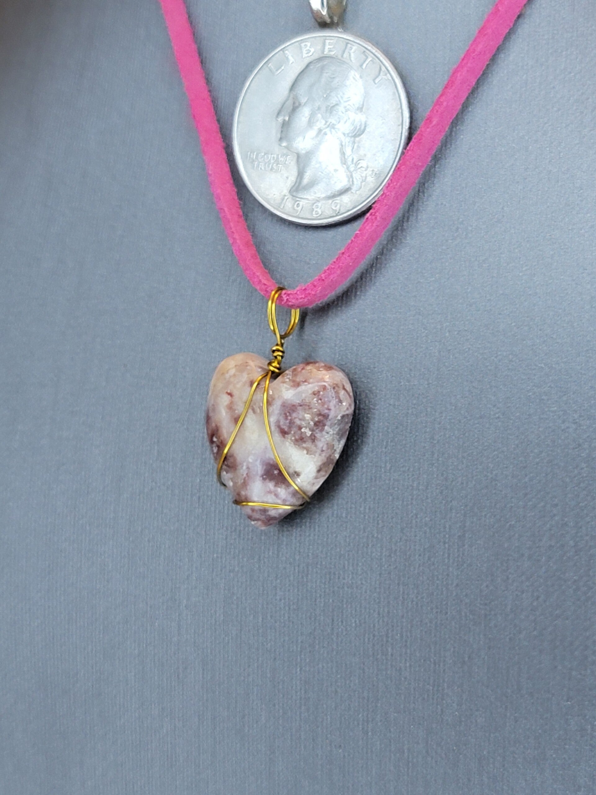 Pendant & Necklace Heart Cabochon, Red and White Jasper.