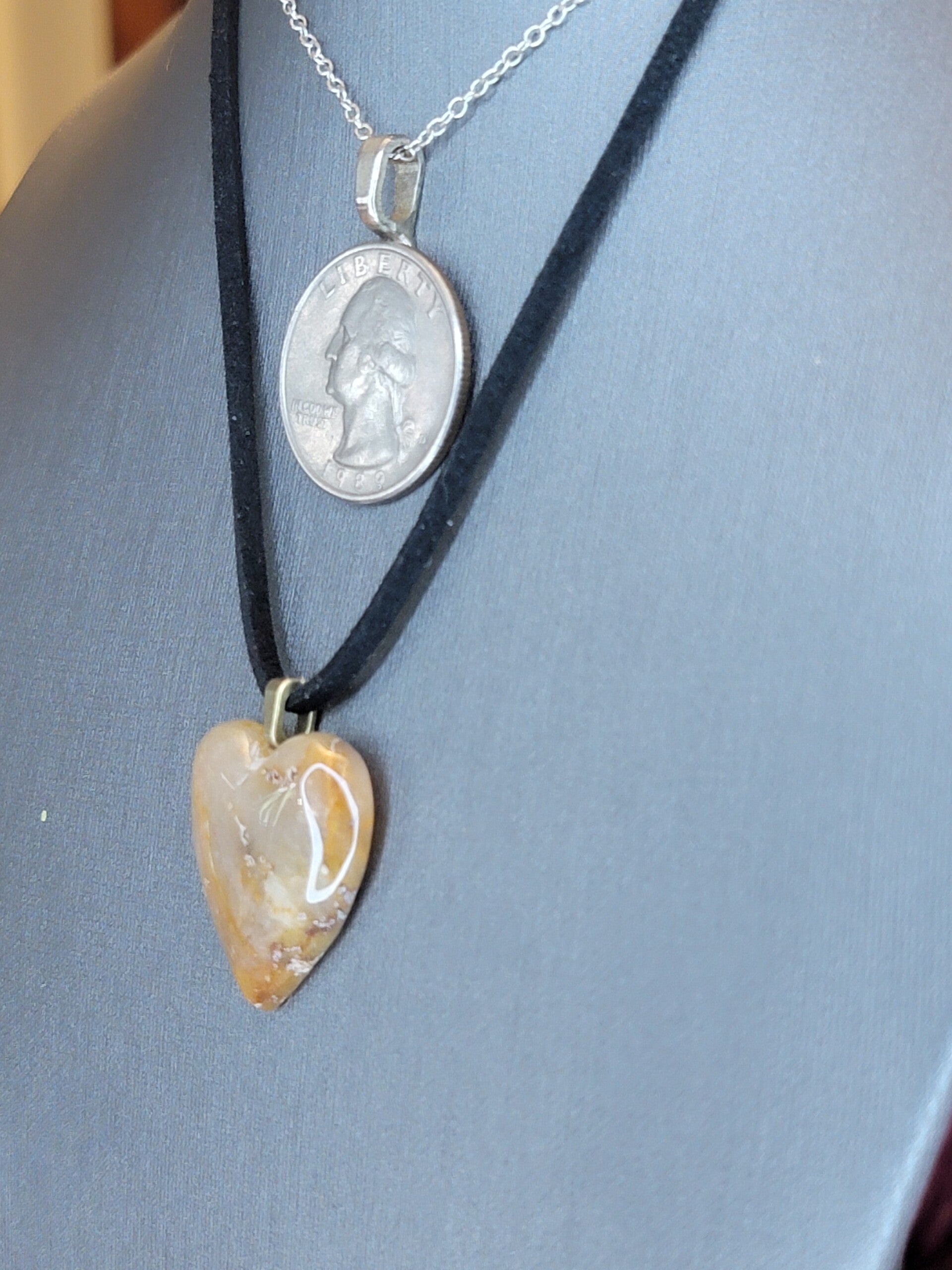 Pendant & Necklace, Sunstone Cabochon Heart.