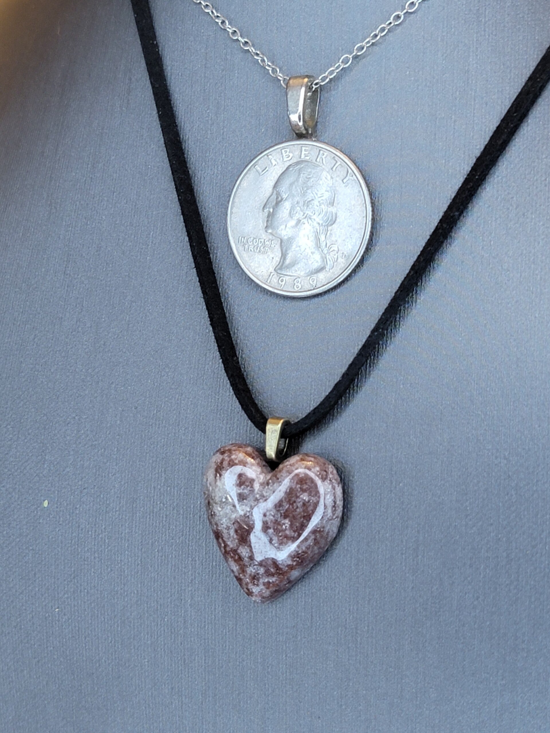 Pendant & Necklace Heart Cabochon, Red and White Jasper.