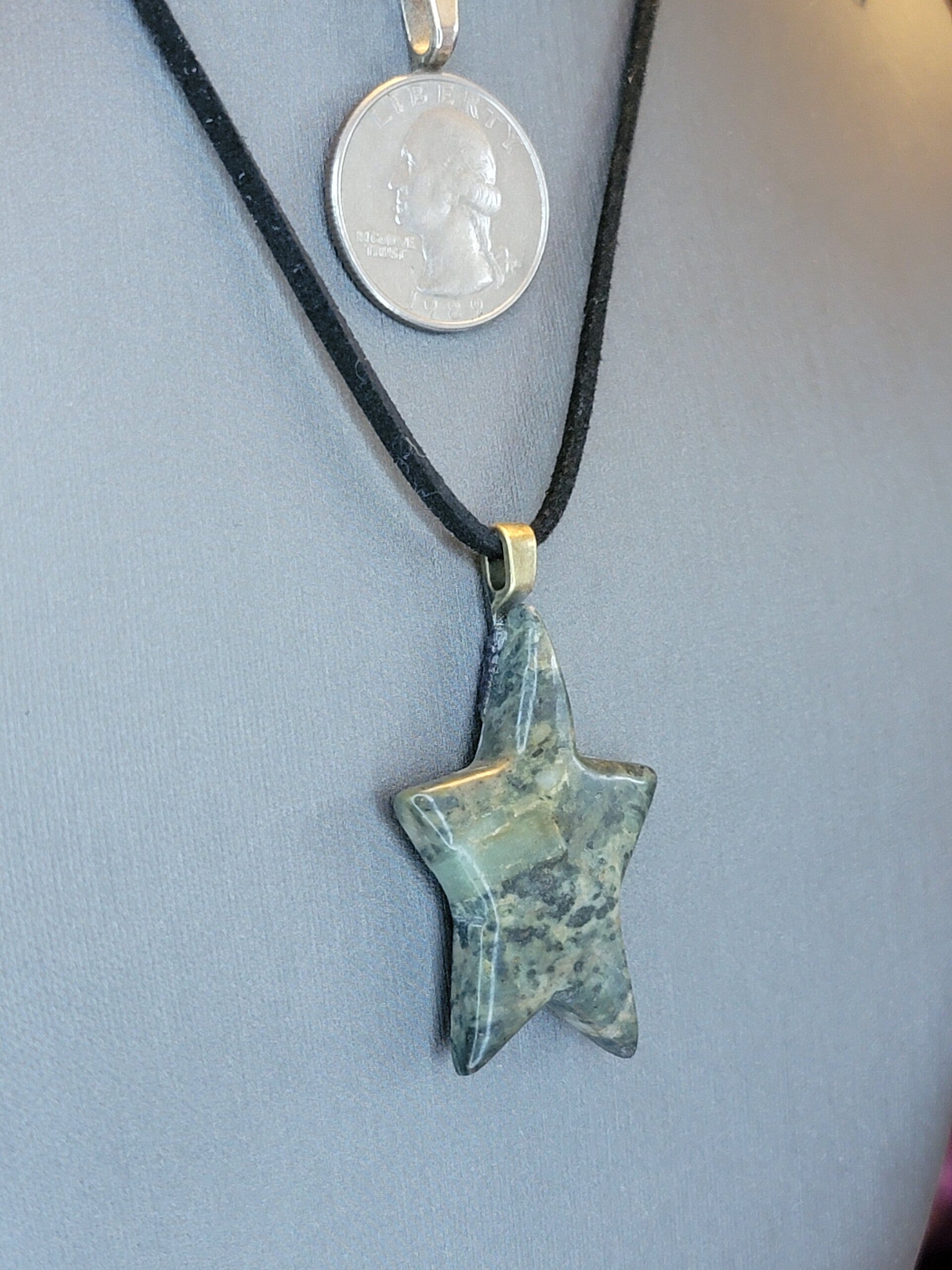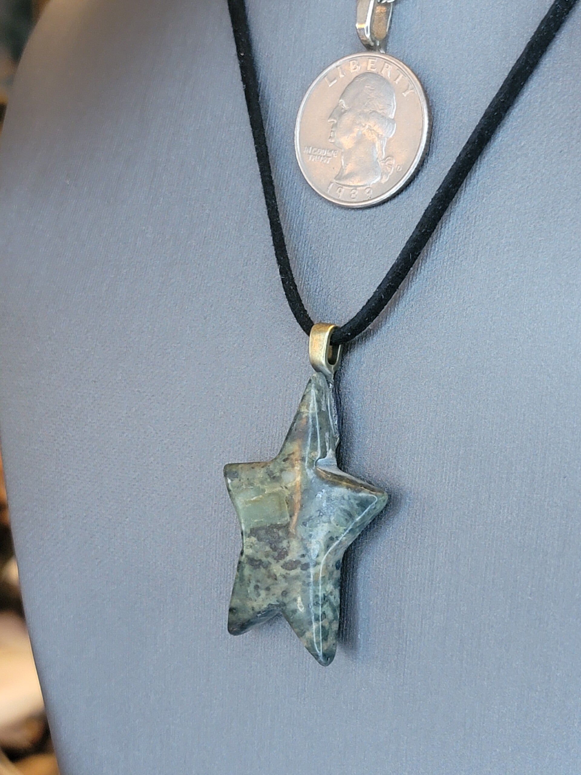 Pendant & Necklace Serpentine Jade. Green Magnesium & Olivine - Britannica, Star shaped Cabochon.