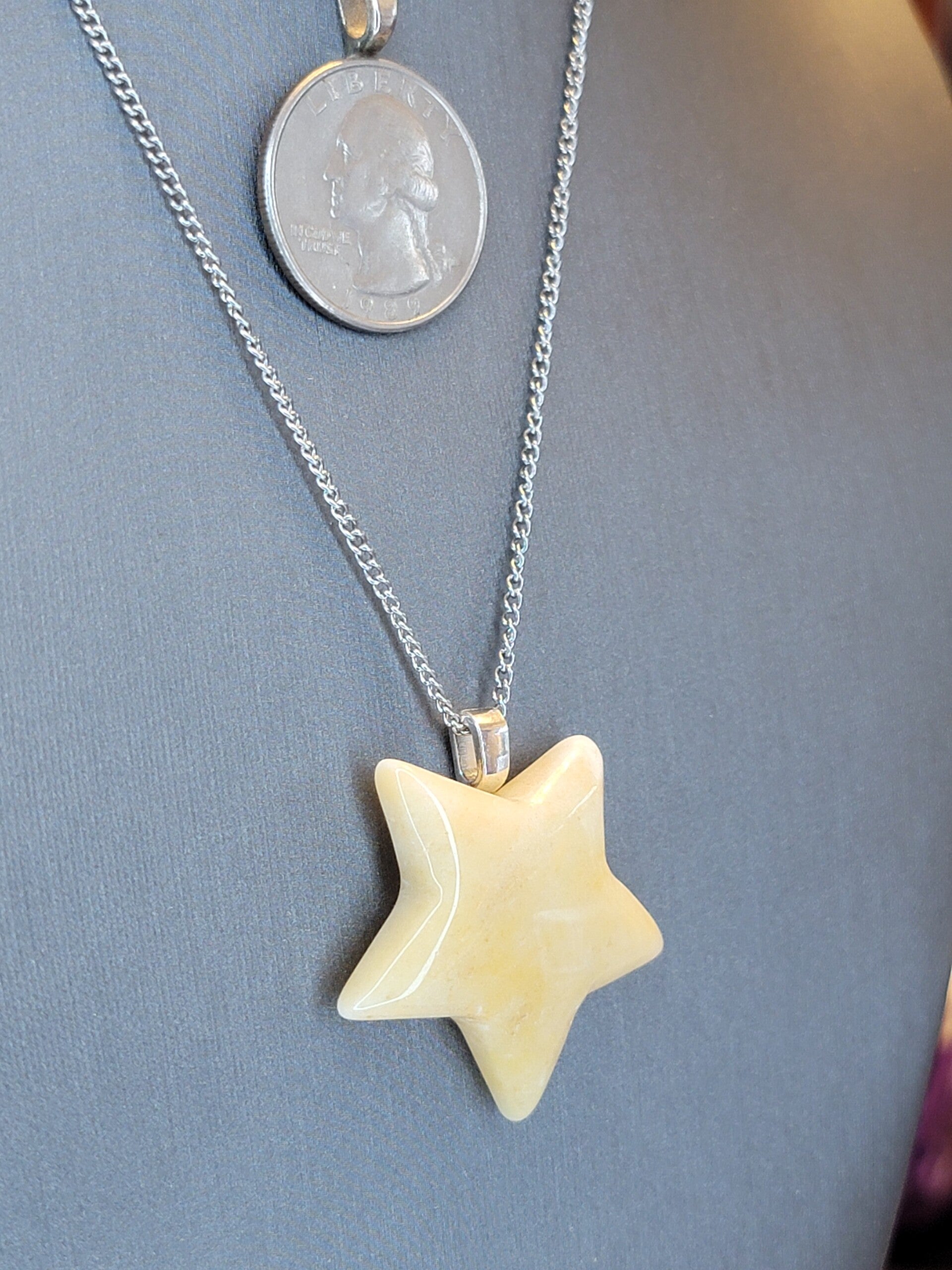 Pendant & Necklace, White Jasper Star shaped cabochon.
