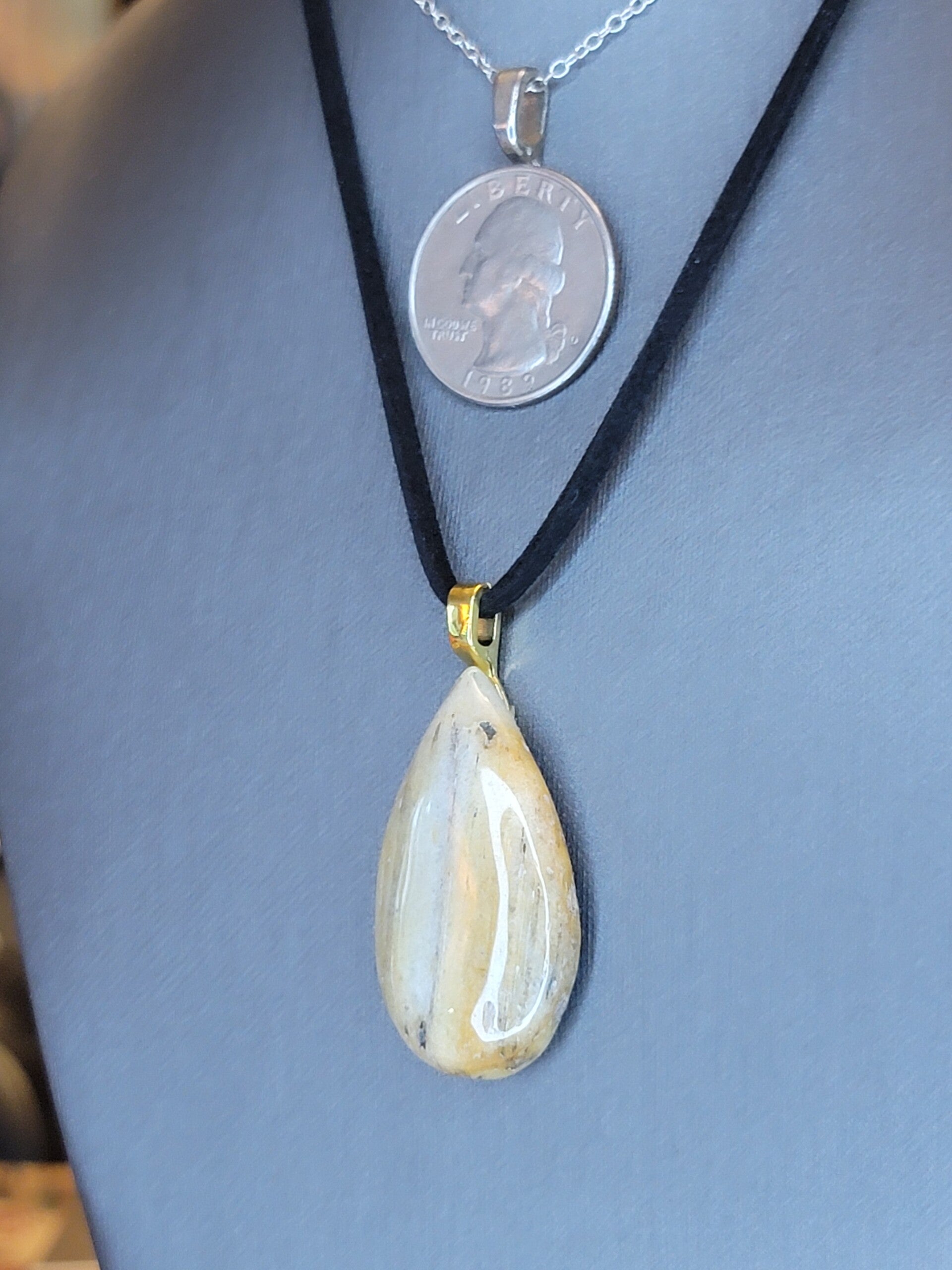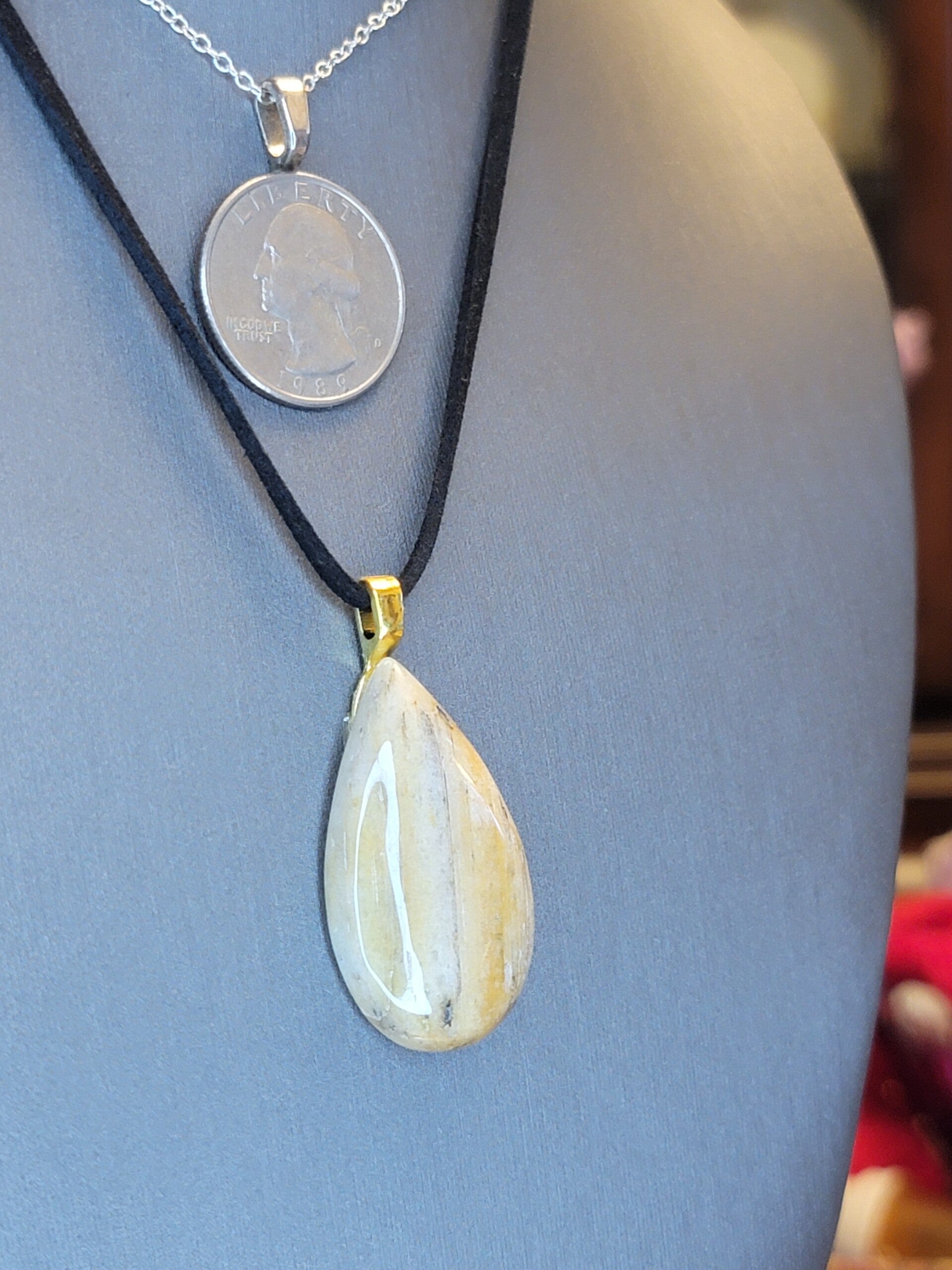 Pendant & Necklace Petrified wood, Teardrop shaped Cabochon.
