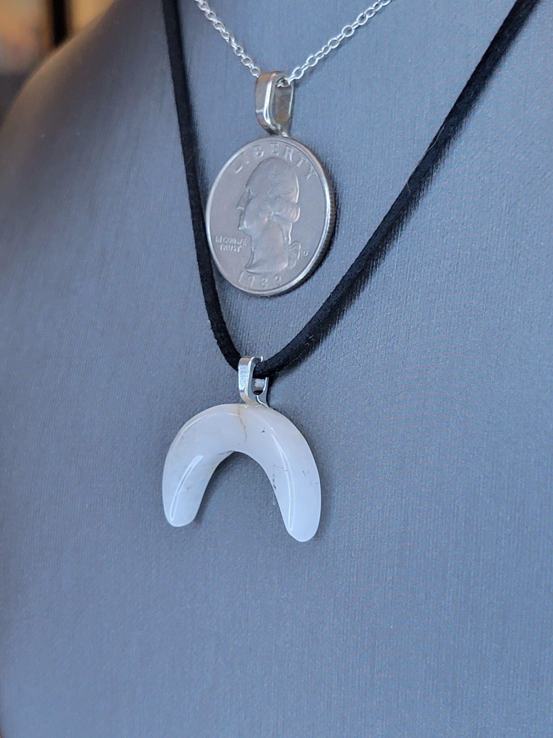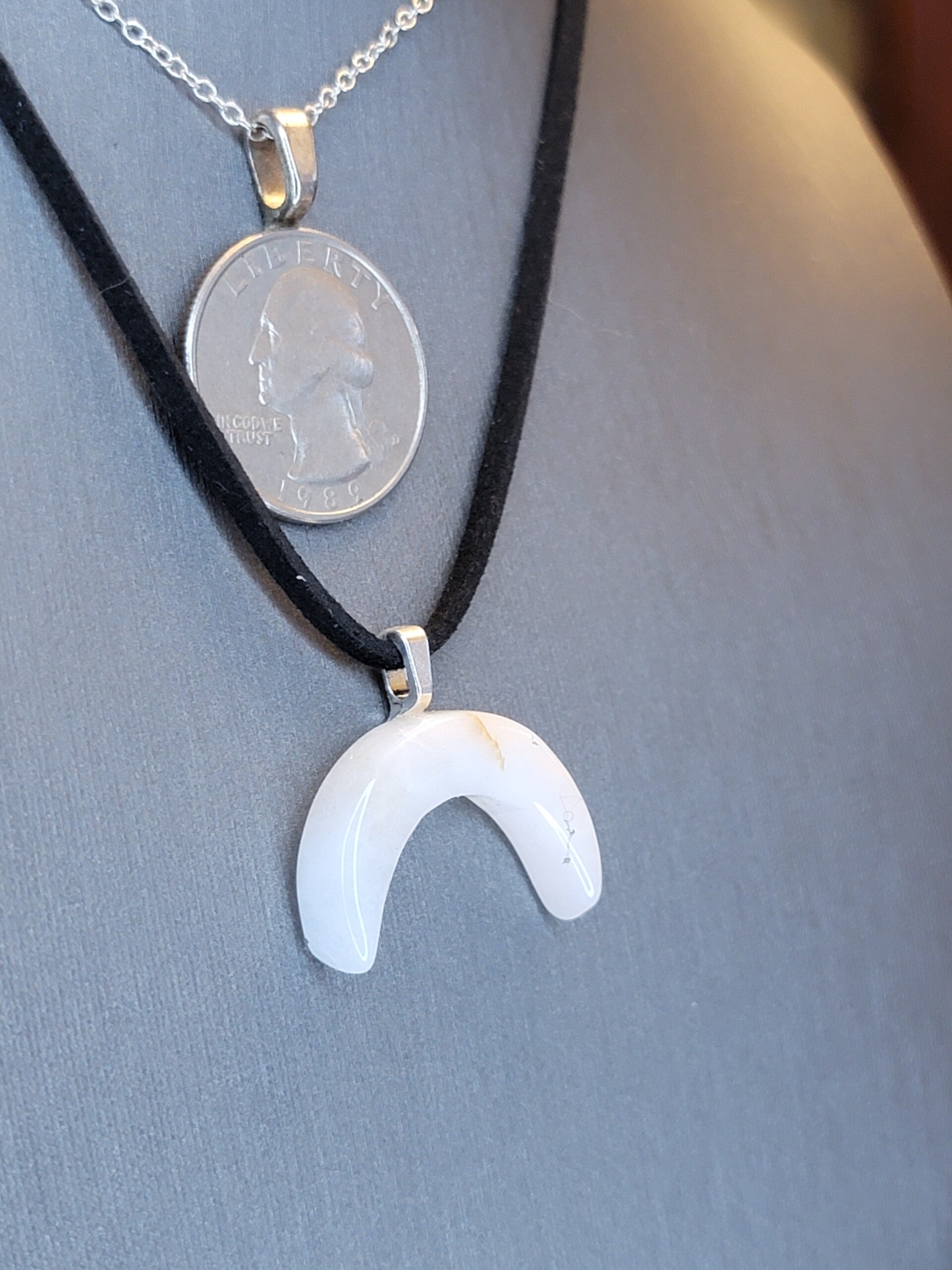 Pendant & Necklace, Sunstone Moon shaped cabochon.