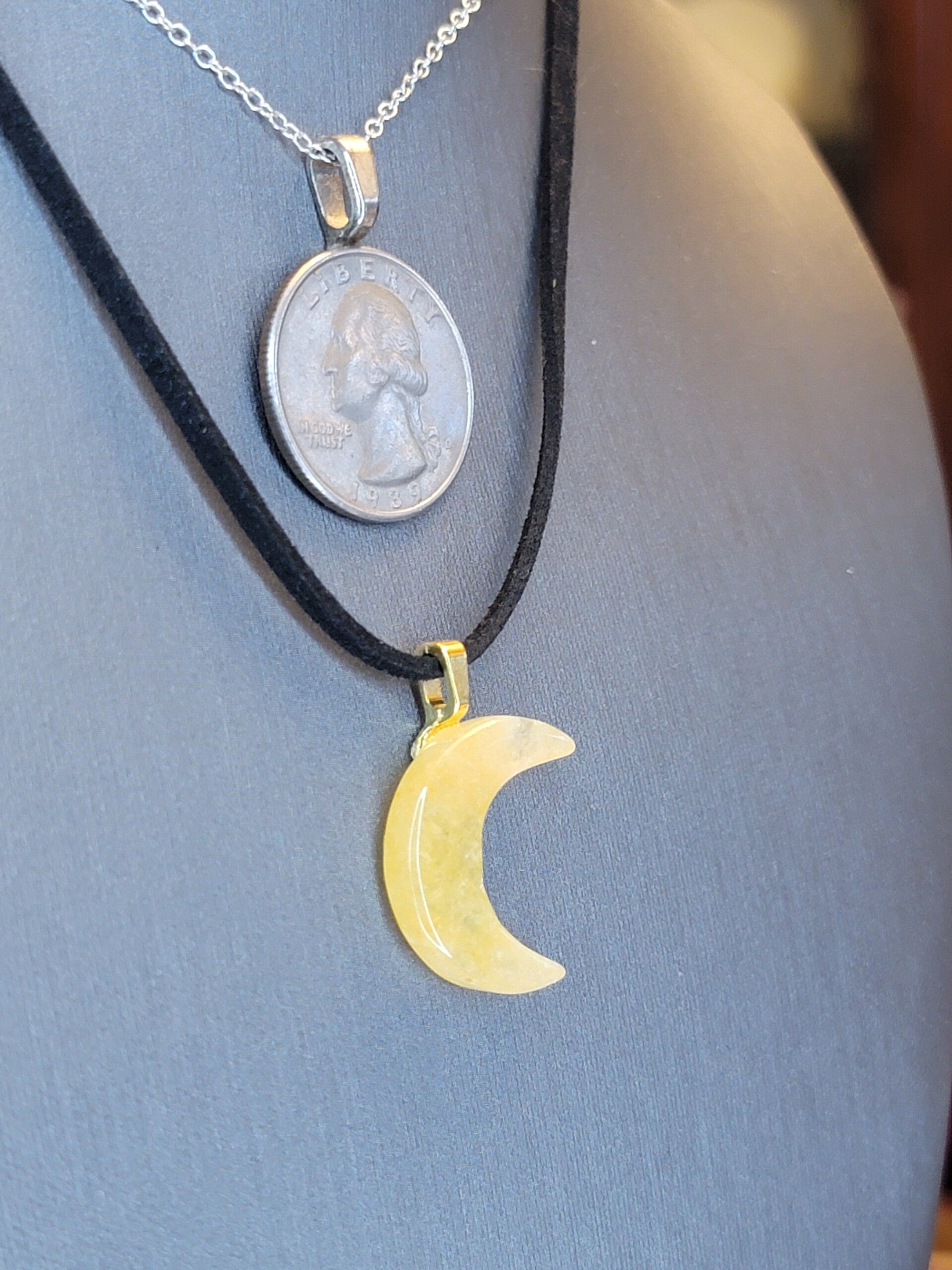 Pendant & Necklace, Sunstone Moon shaped cabochon.