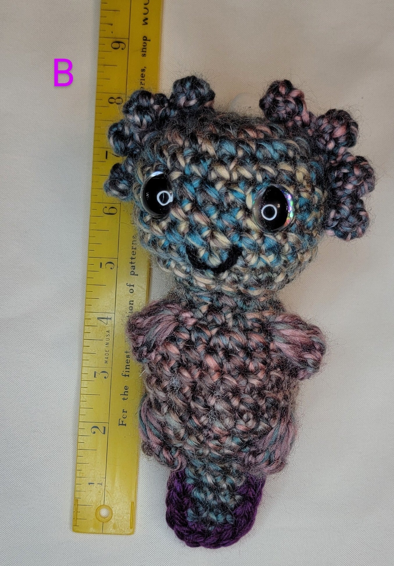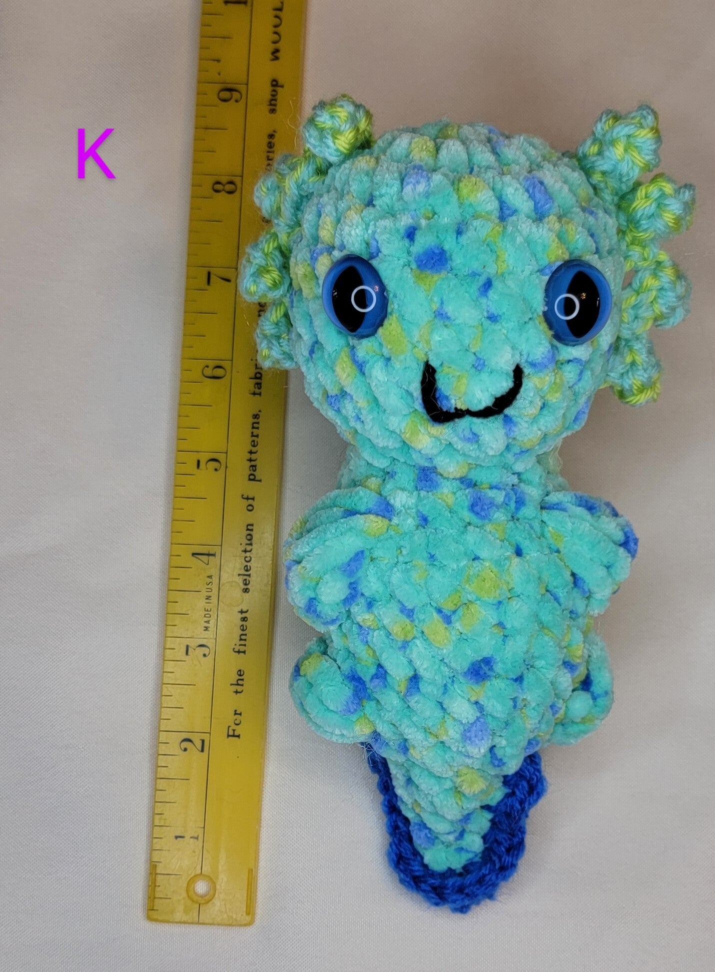 5" to 9" tall Axoloti in various colors and eye types. Order by letter #