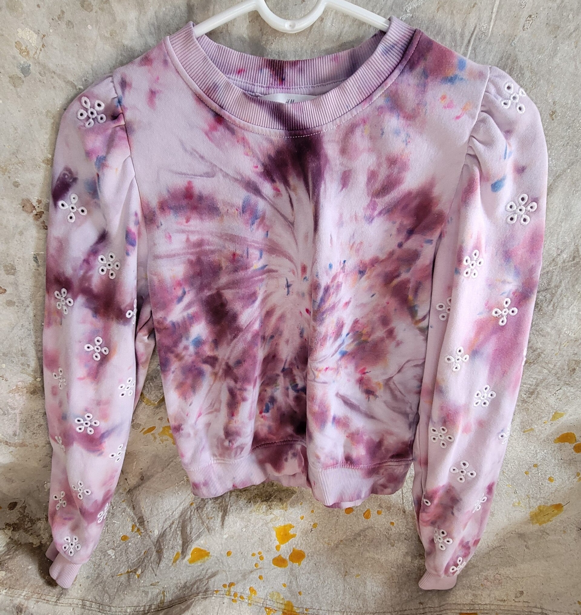 H & M long sleeved sweatshirt with eyelets on sleeves. Swirl design Dyed in Sachet