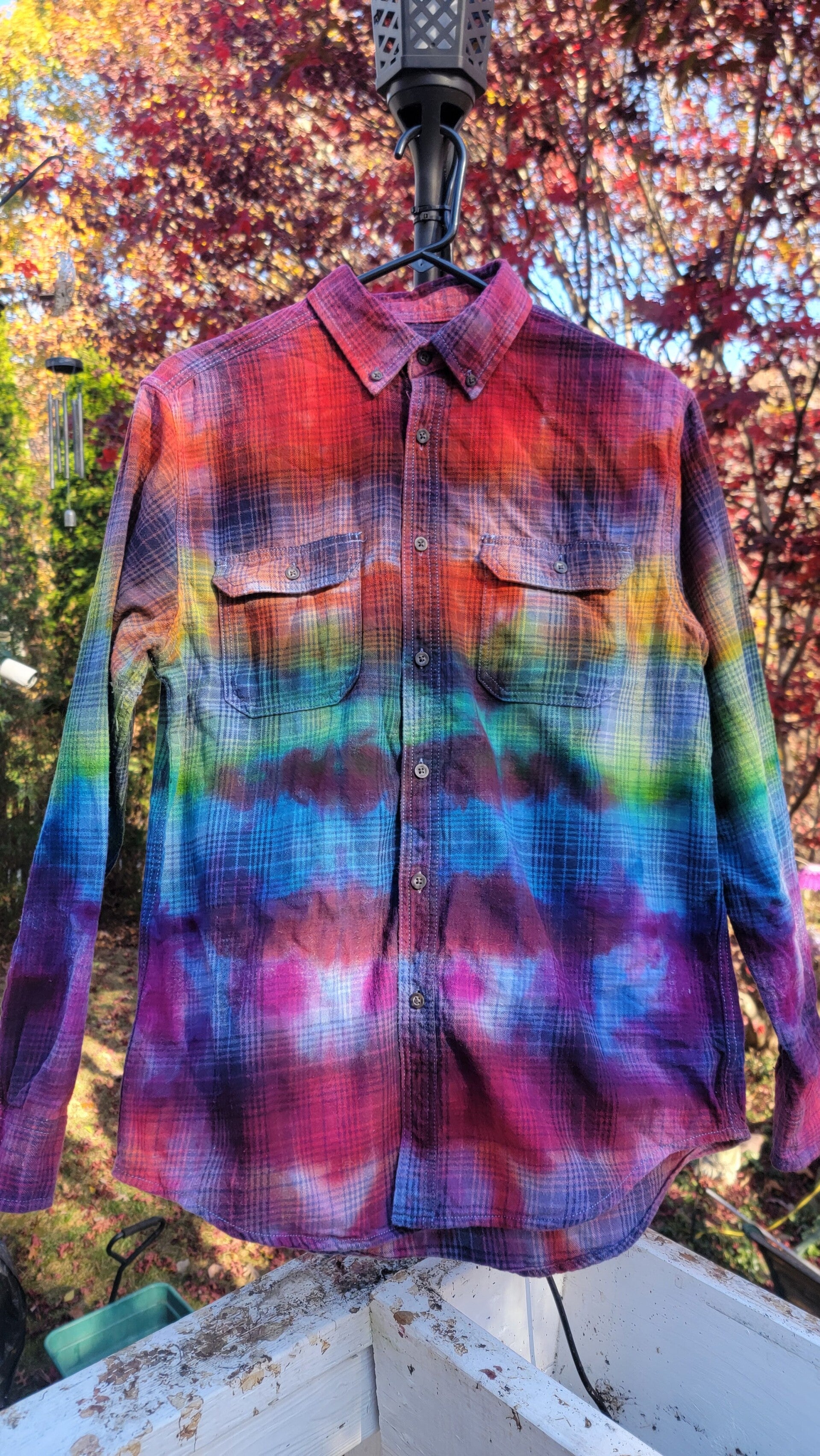 George brand size Medium flannel plaid long sleeved shirt. Dyed in rainbow colors!