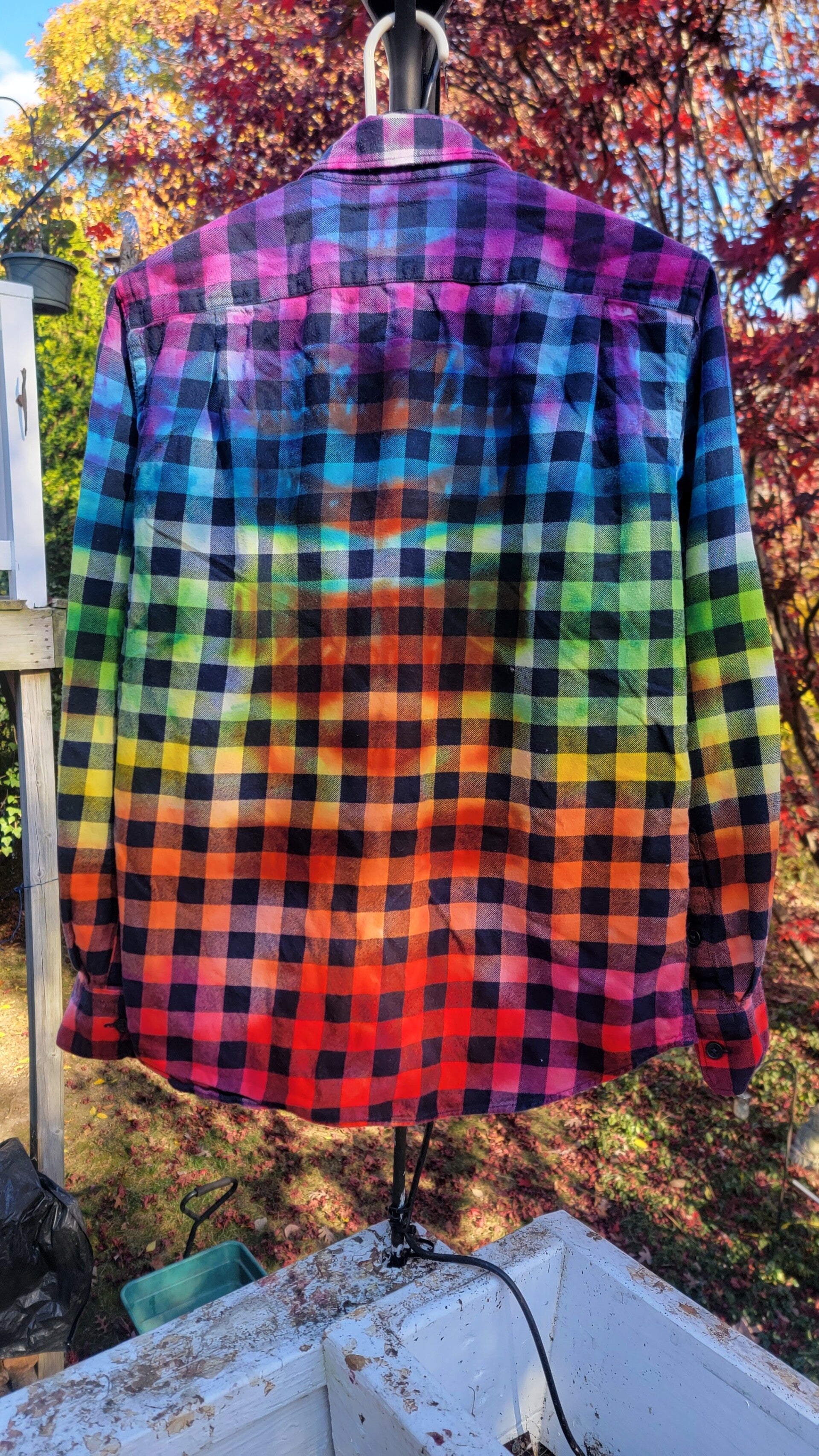 UNIQLO brand flannel plaid long sleeved shirt size Small.dyed in rainbow colors