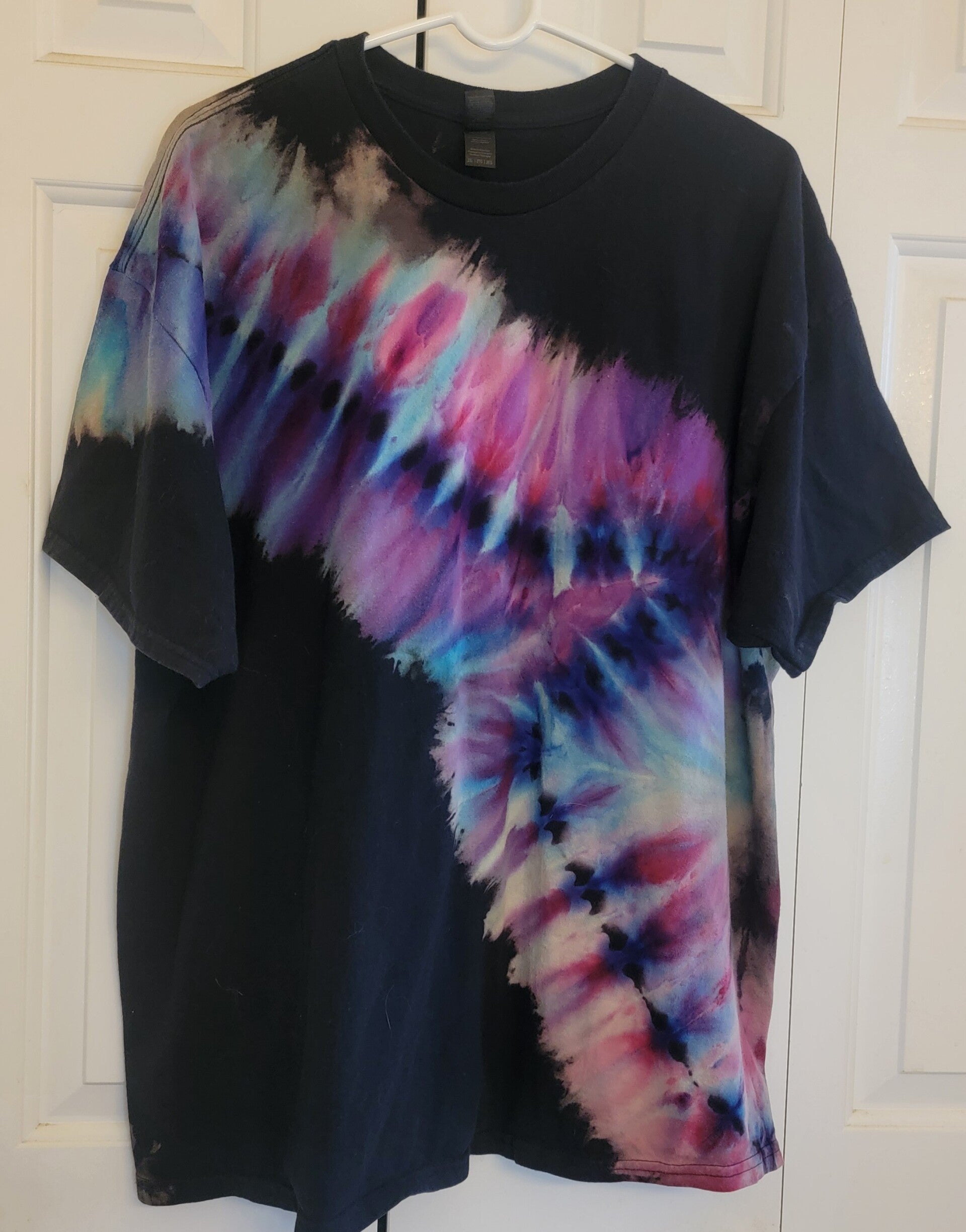Black cotton short sleeves t-shirt reverse dyed with a lightening strike! Dyed in Mindbender
