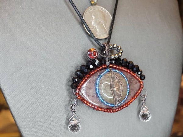 Both Cabochons are RI beach stones, are self collected, hand cut, shapped and polished into cabochons. Wire wrapped and oxidized