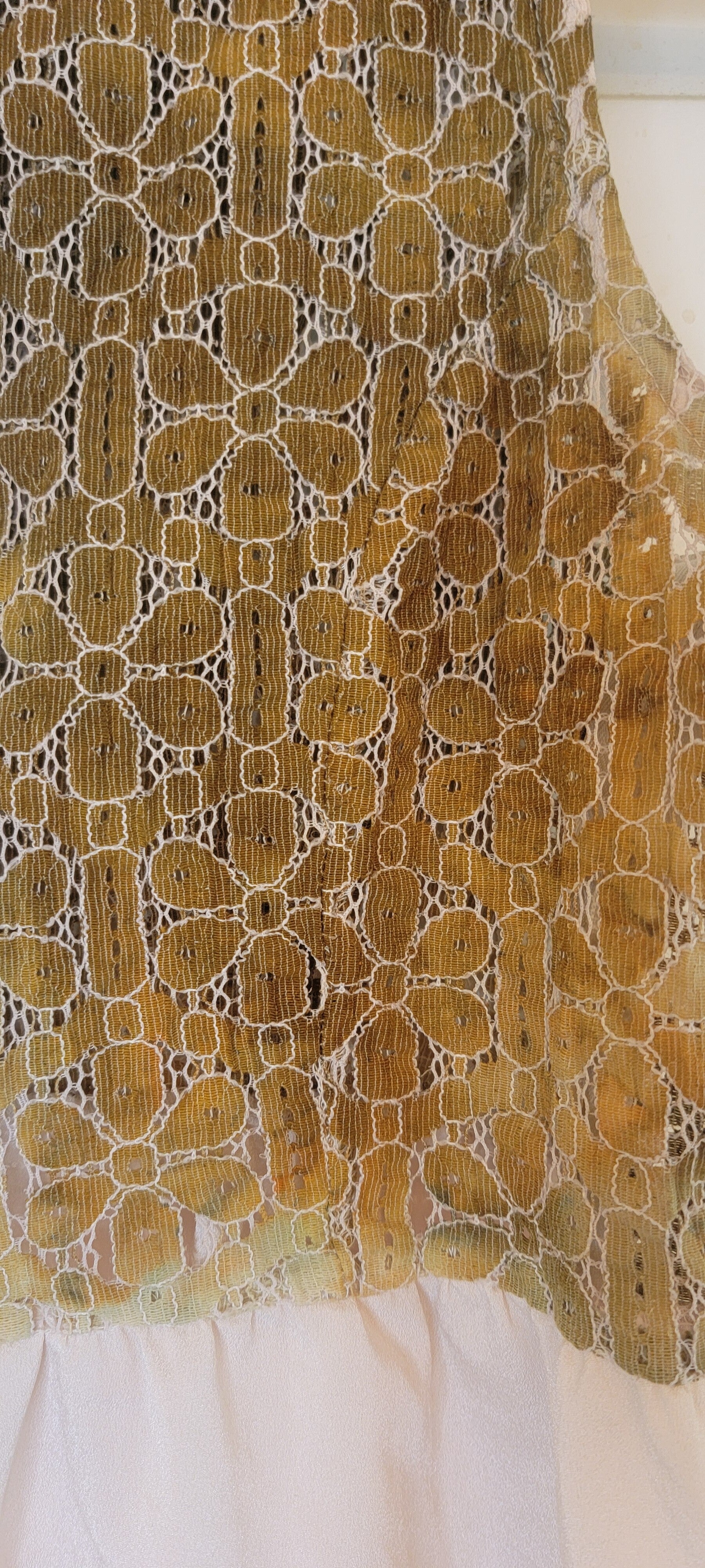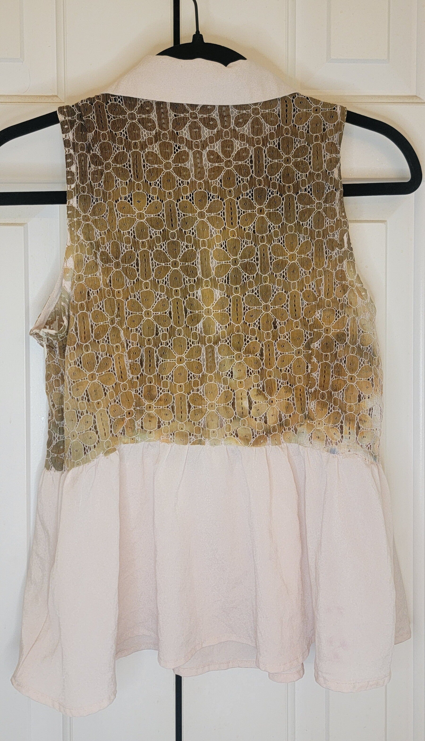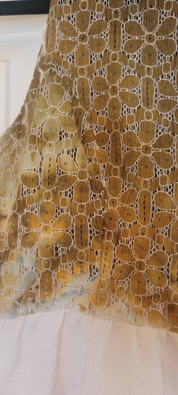 Manteau lace cotton top with a collar. Ruffled beige trim. Dyed in Bronze. Side zipper