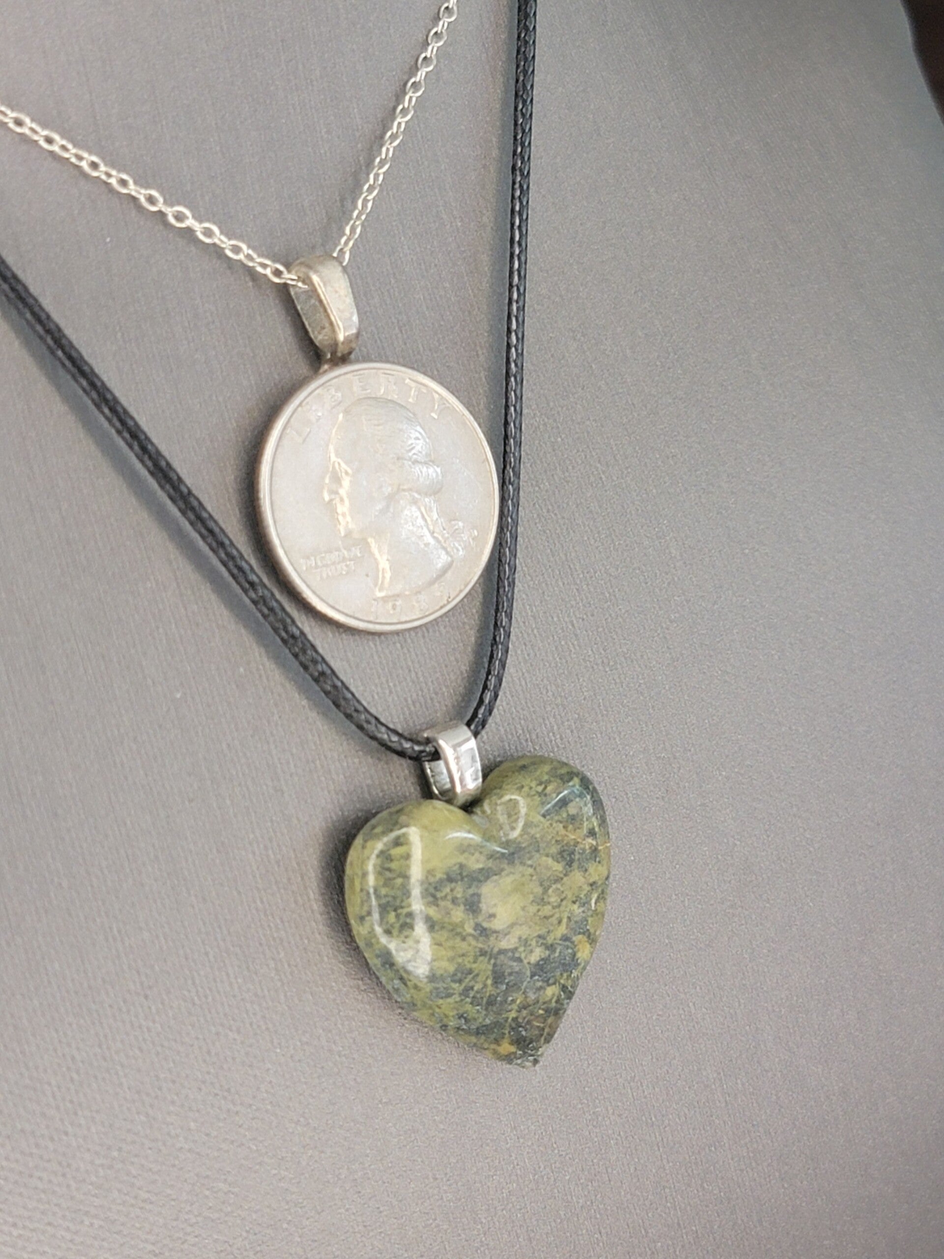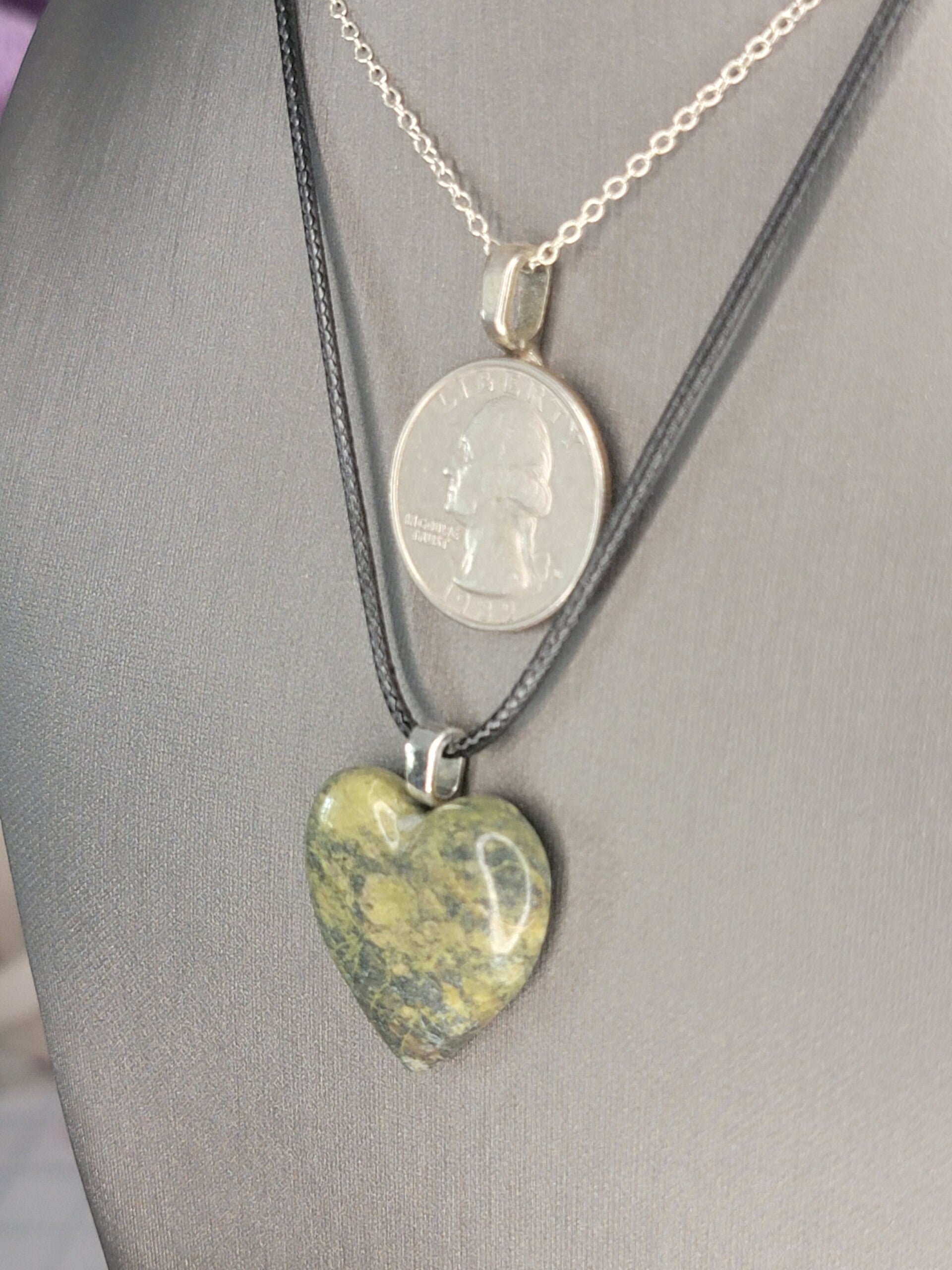 Pendant & Necklace Serpentine Jade Heart. Green Magnesium & Olivine - Britannica, Oval shaped Cabochon.