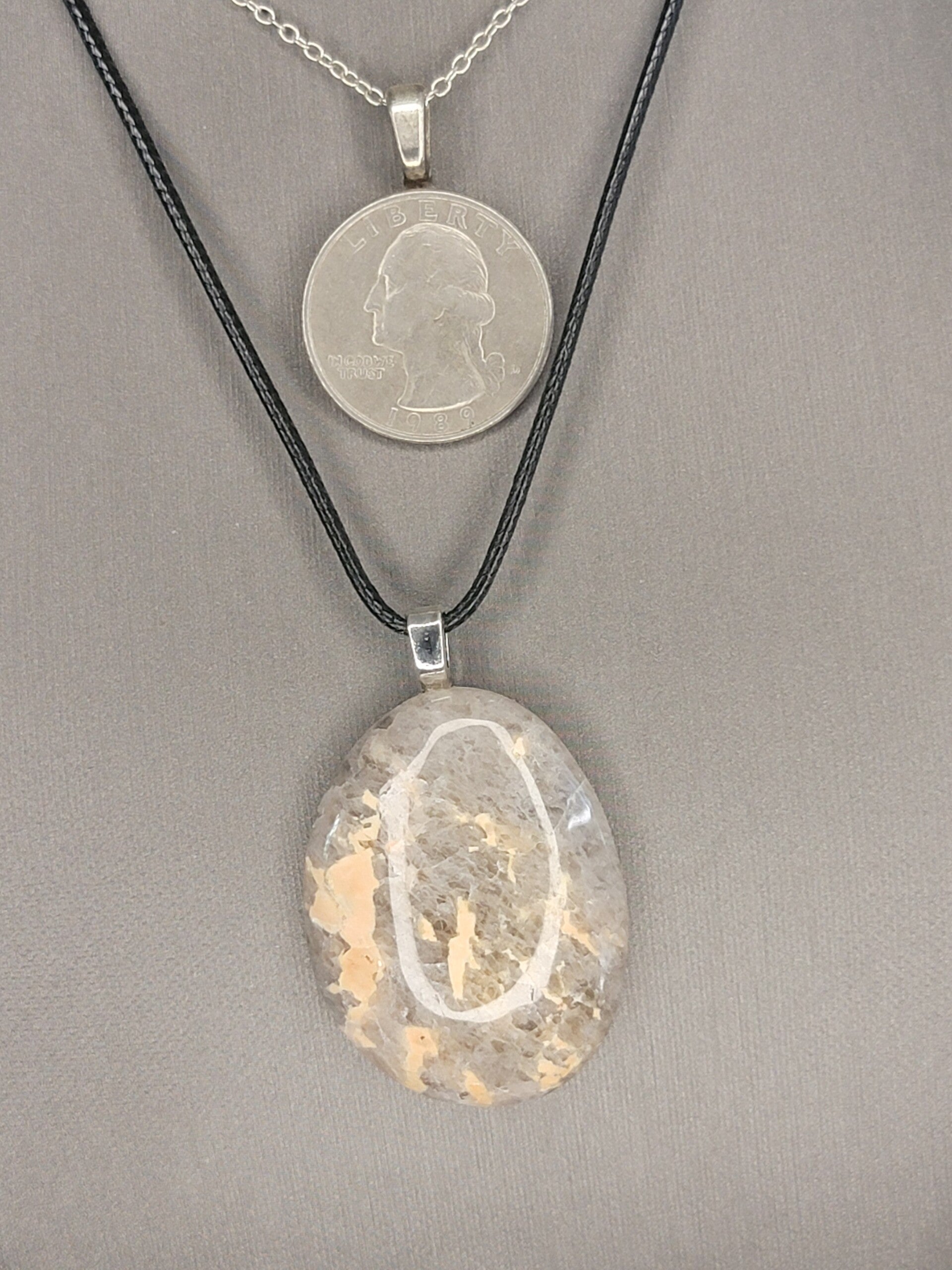 Pendant & Necklace, Rhodonite Agate Cabochon.