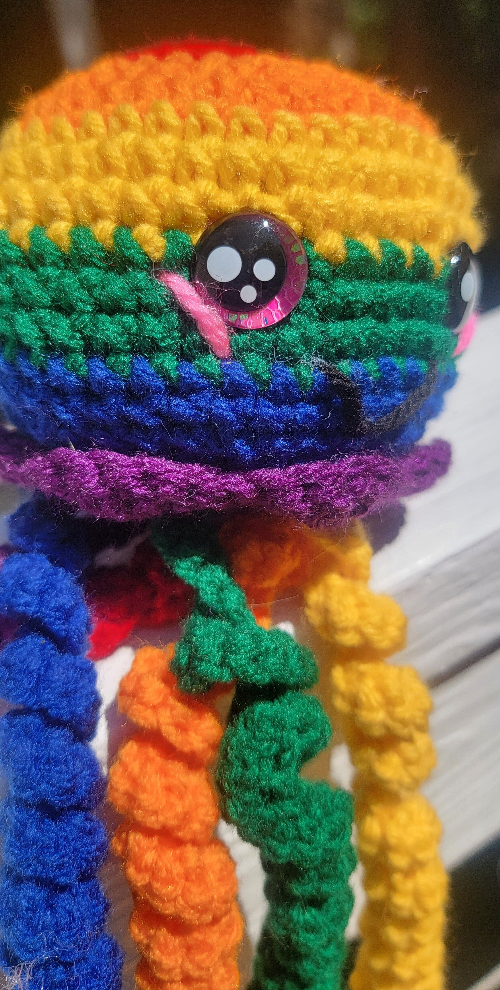 Rainbow Pride jellyfish. Bright beautiful colors. 9" long